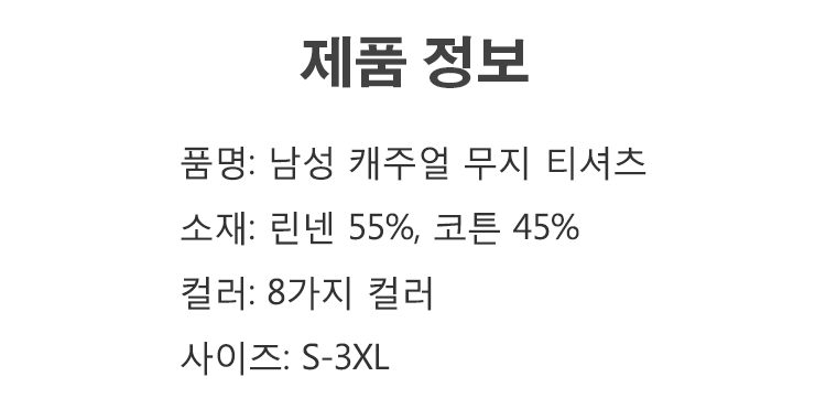 남성 캐주얼 무지 티셔츠